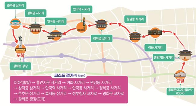 행사 구간은 DDP를 출발해 흥인지문~창덕궁삼거리~경복궁사거리~광화문광장까지 이어지는 6㎞ 코스다. 참가자들은 이날 오전 8시부터 전통과 현대의 미가 조화를 이루는 도심을 안전하게 걷게 된다.