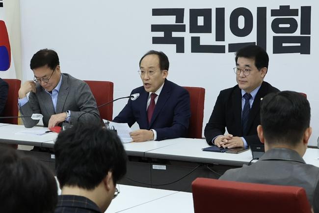 추경호 국민의힘 원내대표는 이날 기자간담회에서 전날 열린 민주당의 장외 집회에 대해 “이재명 대표의 1심 선고를 앞두고 민주당이 당력을 오로지 방탄용으로 낭비하고 있다”며 "민생을 내팽개친 민주당의 장외투쟁은 본질적으로 이 대표의 방탄을 위한 것에 불과하다"고 주장했다. 그는 “특검을 외치는 구호도 결국 국민을 호도하기 위한 것이고, 목적은 이재명 대표의 방어라는 점을 국민이 이미 알고 있다”며 민주당의 행태를 강하게 비판했다.