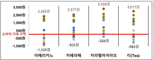 • 아메리카노 3,001원…소비자 기대 대비 최대 1,153원 비싸