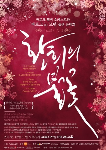 바로크 인 모던의 바로크의 빛 Ⅱ <환희의 불꽃>은 2017년 송년 최고의 선물로 헨델의 메시아 & 왕궁의 불꽃놀이로 진한 감동을 선사할 예정이다.