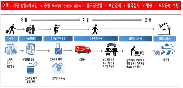 이 서비스는 공항 이외의 장소에서 여행객이 수하물을 미리 맡길 수 있는 시스템으로, 해외 도착 공항에서 수하물을 바로 찾을 수 있어 편리하다.