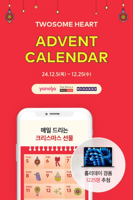 한편 투썸플레이스의 ‘어드벤트 캘린더’ 이벤트에 대한 자세한 내용은 ‘투썸하트’ 앱에서 확인 가능하다.