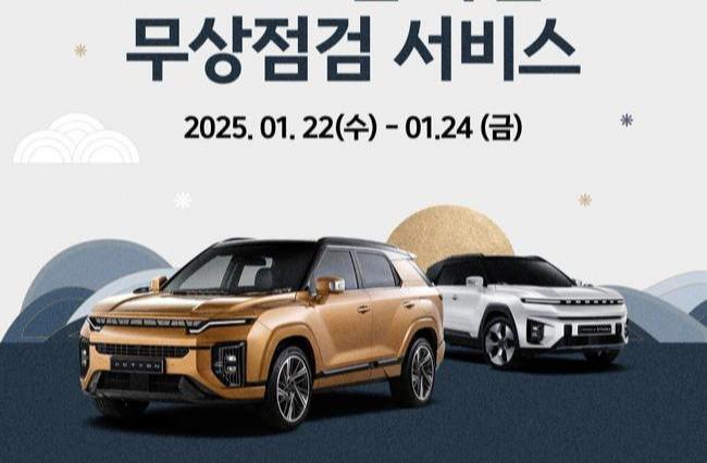 KG 모빌리티(KGM)가 한 주 앞으로 다가온 설 명절을 맞아, 장거리 운행으로 고향을 찾는 고객들에게 편의 제공을 위해 `2025년 설 특별 차량점검 서비스`를 시행한다고 21일 밝혔다.