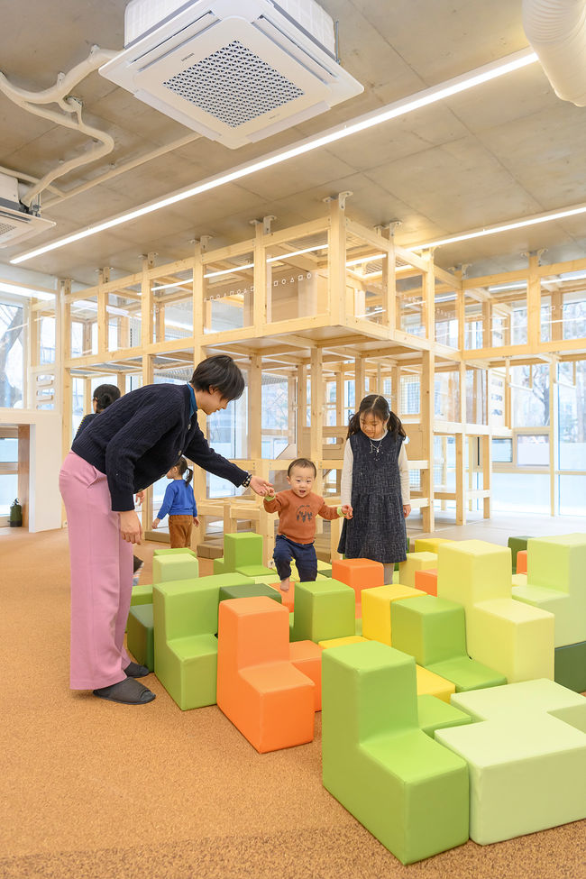 먼저 ‘지붕이 있는 바깥 놀이터’ 콘셉트의 ‘서울형 키즈카페 양천구 오목공원점’은 올해 2월에 개관한 이른바 ‘신상’ 놀이터다. 공원형 키즈카페인 ‘오목공원점’은 연면적 225.72㎡(실내 126.72㎡)로 조성됐으며, 숲에 둘러싸인 공원의 자연 환경과 어울리는 목재를 건축자재로 사용했다. 건물 벽체를 탁 트인 개방감을 주는 통유리로 마감하고, 전면부에는 접이식 문을 설치해 실내 놀이터와 데크를 하나의 공간으로 연결했다. 이를 통해 실내외 놀이공간을 모두 즐길 수 있는 새로운 형태의 키즈카페로도 각광받고 있다.