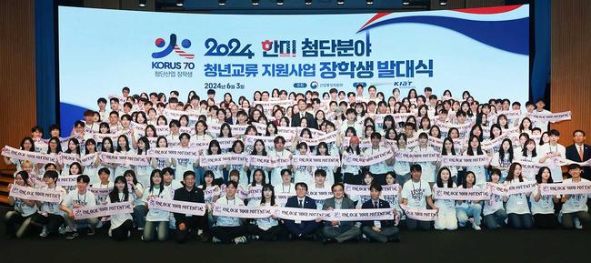 안덕근 산업통상자원부 장관은 2024. 6. 3(월) 14:00 서울 중구 대한상공회의소 국제회의장에서 조이 사쿠라이(Joi SAKURAI) 주한 미국 대사대리, 민병주 한국산업기술진흥원장을 비롯한 장학증서 수여 학생 및 관계자 등이 참석한 가운데 `작년 4월 한미동맹 70주년을 기념하여 양국 정상 간 합의한 한미 이공계 청년 특별교류 이니셔티브를 추진`하기 위해 열린 「한미 첨단분야 청년교류 지원사업 1기 장학생 발대식」에 참석하여, 축사를 한 후 학생 대표 6명에게 장학증서를 수여했다.