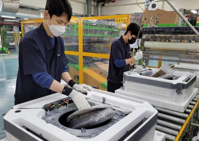 광주광역시 광산구 하남산단 6번로에 위치한 삼성전자 광주사업장에서 직원들이 `시스템 에어컨`을 생산하는 모습