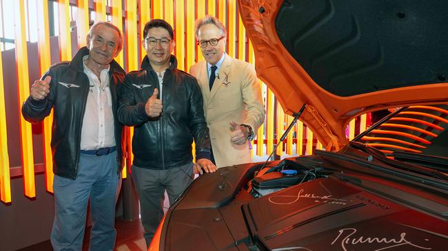 제네시스는 11일(현지시각) 영국 웨스트서식스(West Sussex)주에서 열린 세계적인 자동차 축제 `2024 굿우드 페스티벌 오브 스피드(Goodwood Festival of Speed, 이하 굿우드 페스티벌)`에서 `GV60 마그마 콘셉트` 등의 고성능 주행 능력을 시연해 보였다. (왼쪽부터) 제네시스 브랜드 공식 파트너 재키 익스(Jacky Ickx), 제네시스사업본부장 송민규 부사장, 리치몬드 공작(Duke of Richmond) 찰스 헨리 고든레녹스(Charles Henry Gordon-Lennox)가 제네시스 부스에서 기념 촬영을 하는 모습